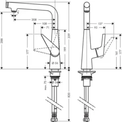 - sifón para ahorrar espacio con un desvío para el lavavajillas