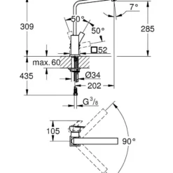 - sifón pop-up: control excéntrico de desagüe