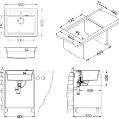 - dimensiones de fregadero: 500 x 348 mm